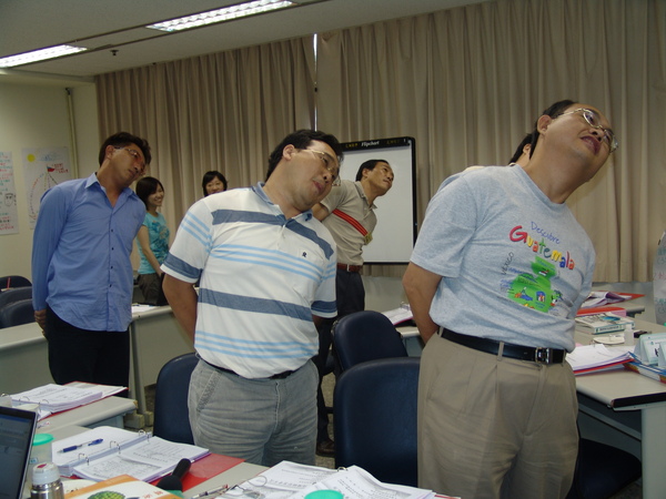 課程期間學員自動自發的擔任值日生,分工合作協助課程進行、提醒同學上課誤遲到並維持上課秩序…等,讓我印象最深刻的是每到課程的下午時段,總會有一個運動時間,由值日生帶領大家一塊兒動一動舒張筋骨,不但提升了學員在課程中的參與感,更讓大家能更快認識彼此。另外,更讓我難忘的一件事,是訓練期間剛好是我的生日,他們意外得知,便在生日當天準備了小禮物,在上課中突然關燈,一群大男生唱著生日快樂歌,低沉的歌聲中,擁有無限的祝福,這個意外的驚喜,我永遠都不會忘記。